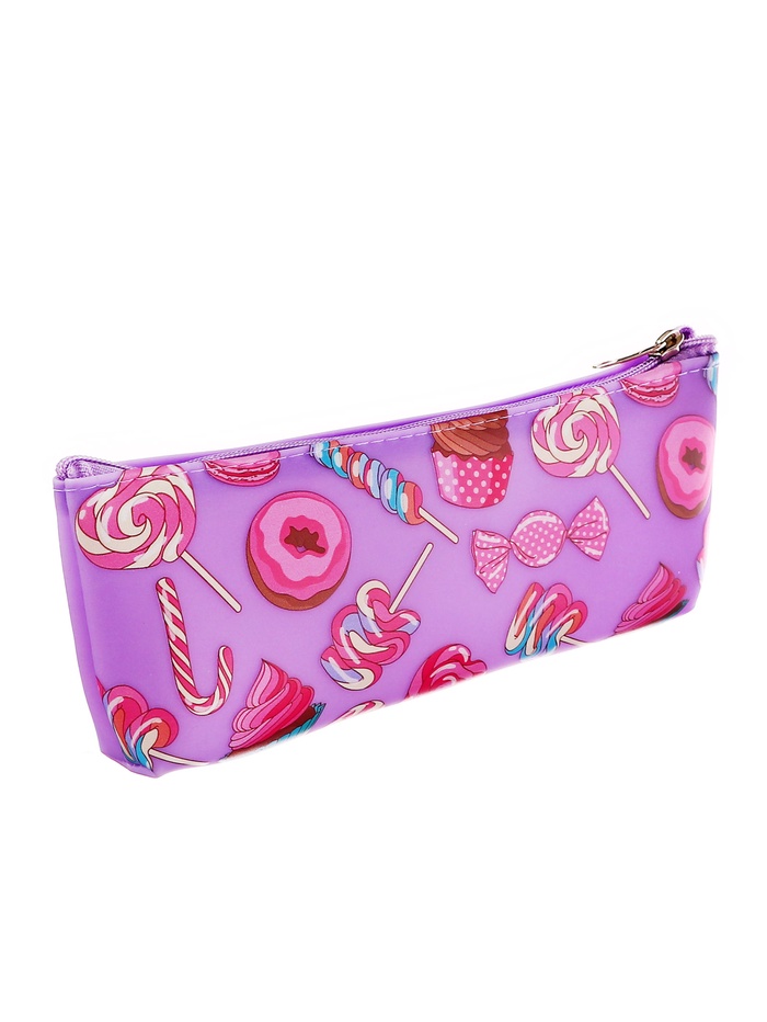 Пенал школьный на молнии Calligrata «Сладости», 1 отделение, плоский, с рисунком, ПВХ, фиолетовый