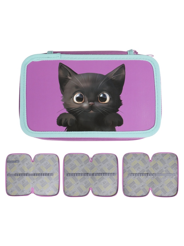 Пенал 3 секции, 125 х 205 х 55 мм, Calligrata 30П26/3 "Кот чёрный", ламинированный картон