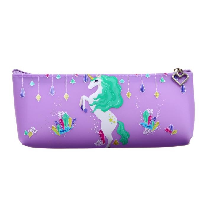 Пенал школьный, на молнии силиконовый «Единорог», сиреневый
