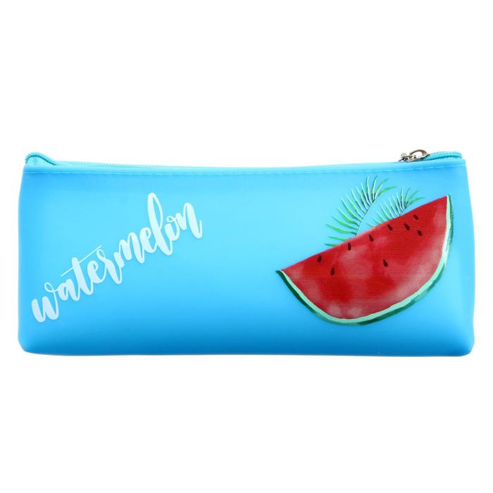 Пенал школьный, на молнии силиконовый «Фрукты», голубой