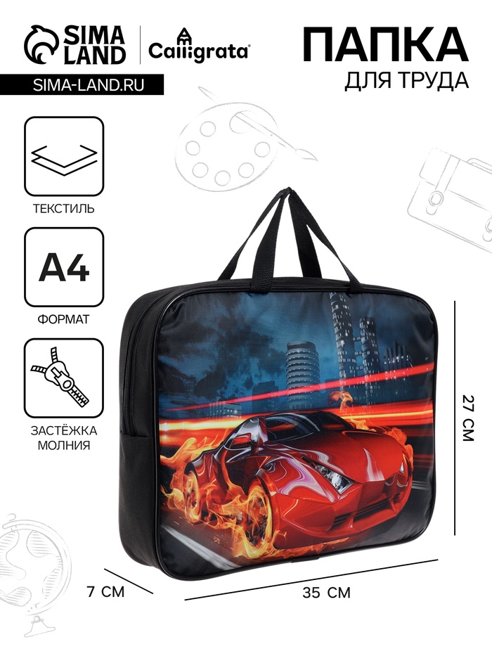 Папка для труда с ручками, текстильная «Авто в огне», А4, 350×270×70 мм, нейлон