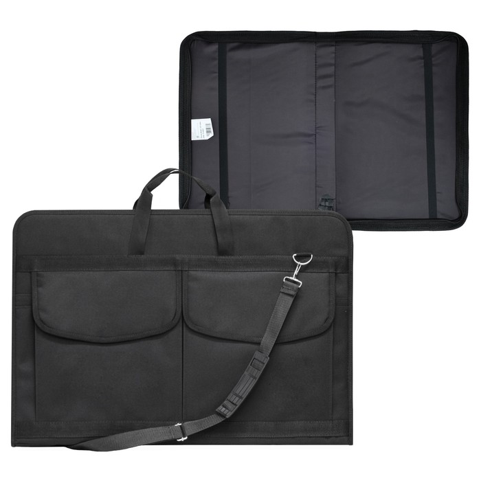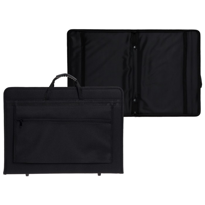 Папка для чертежей и рисунков А2, 650×450×50 мм, с ручками, текстильная, Estado, 3 кармана, чёрная