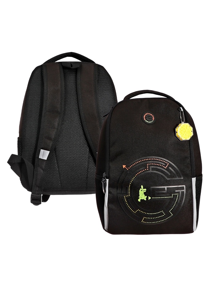 Рюкзак школьный, 38×29×16 см, Grizzly, эргономичная спинка, отделение для ноутбука, чёрный, RB-551-3_1