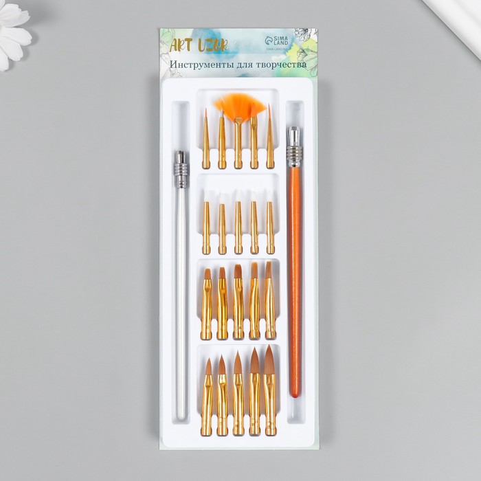Инструмент для творчества набор 22 предмета (2 держателя + 20 насадок), 2×12.5×29.5 см