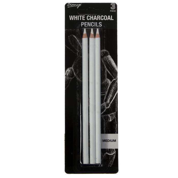 Карандаши угольные, белые, 3 шт. в наборе, средние