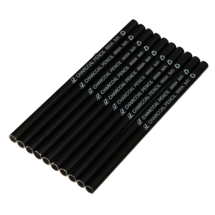 Карандаши угольные чёрные 10 шт. в наборе, Soft