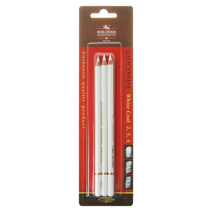 Уголь белый в карандаше Koh-I-Noor GIOCONDA 8812, набор разных твёрдостей № 2, 3, 4
