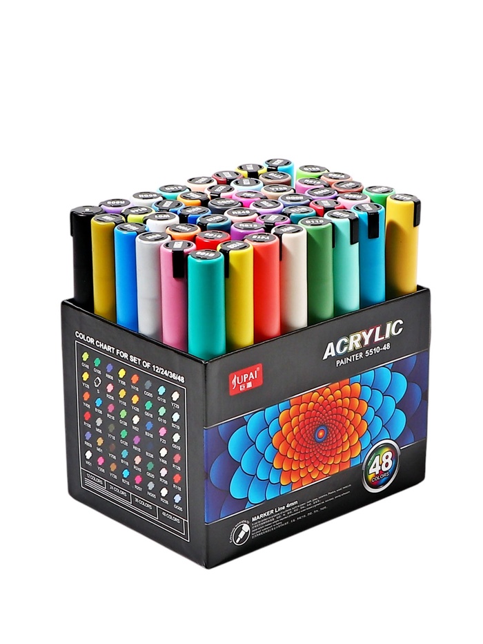 Набор акриловых маркеров 48 штук, пулевидный наконечник 2 мм, толщина линии 1 мм