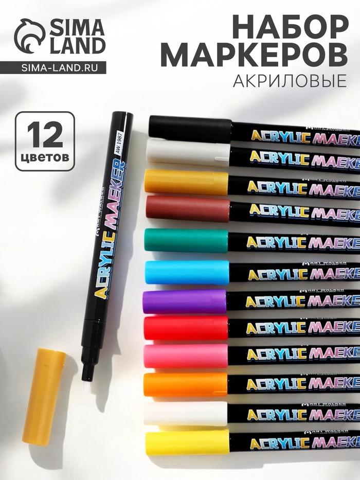 Набор акриловых маркеров 12 цветов, конусный наконечник 0.7 мм, для рисования