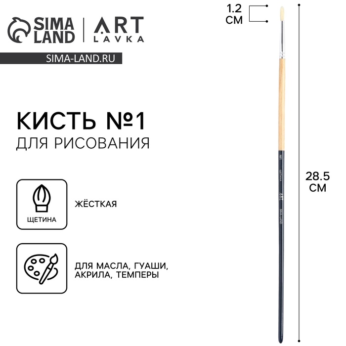 Кисть для рисования щетина круглая № 1 (диаметр обоймы 3 мм; длина ворса 13 мм)