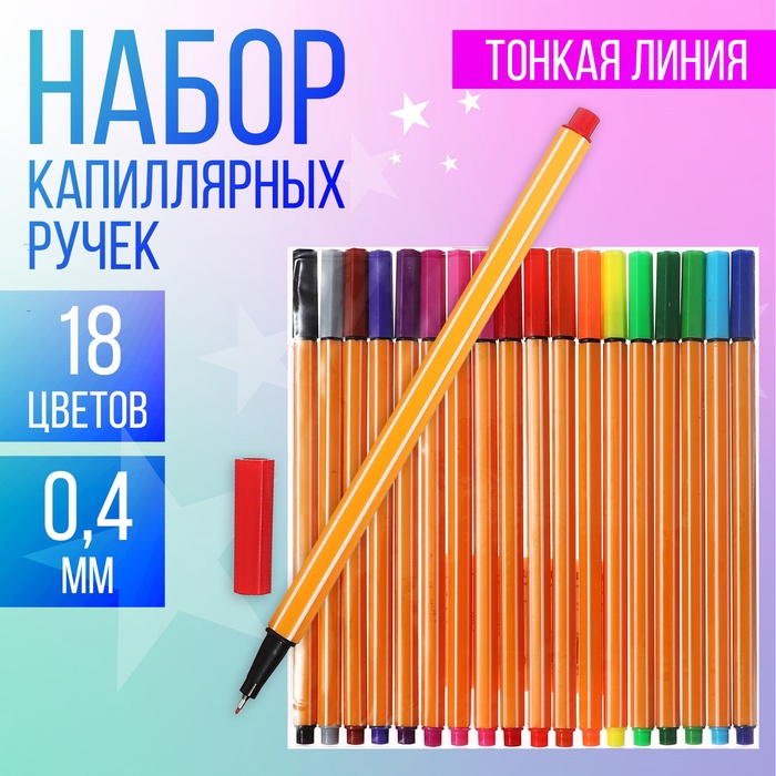Набор капиллярных ручек, Calligrata «Полоски», линия 0.4 мм, 18 цветов