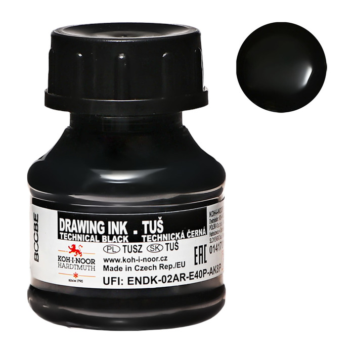 Тушь для письма и рисования художественная, 20 мл, Koh-I-Noor, чёрная