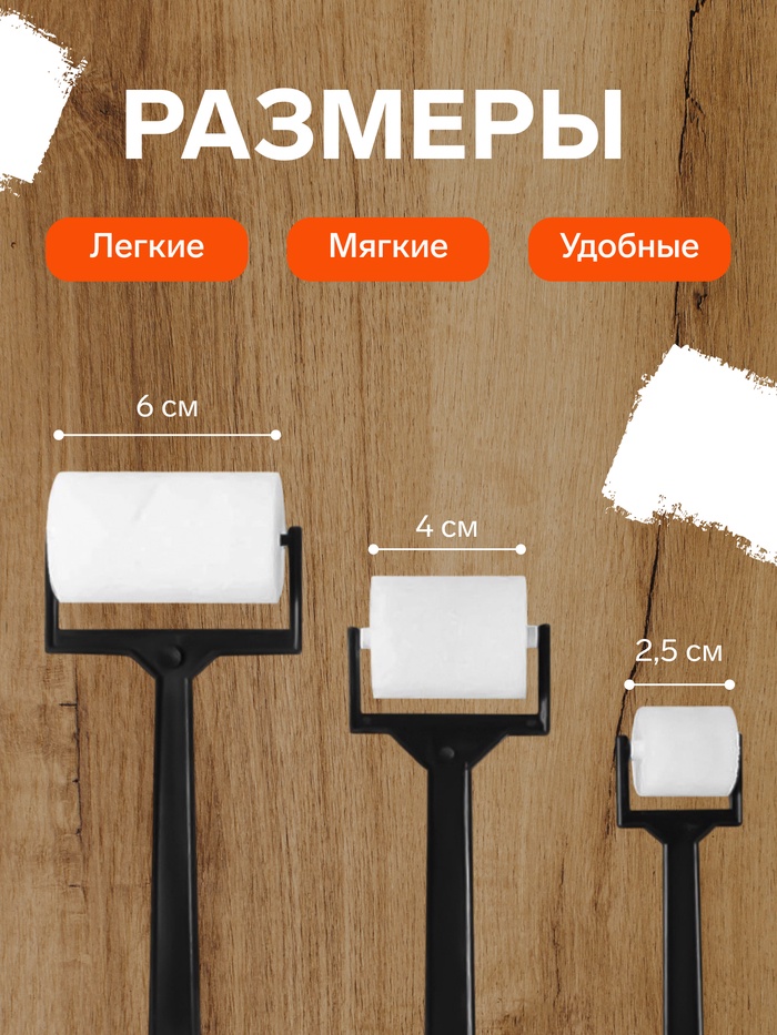 Набор валиков для рисования, поролон, 3 штуки