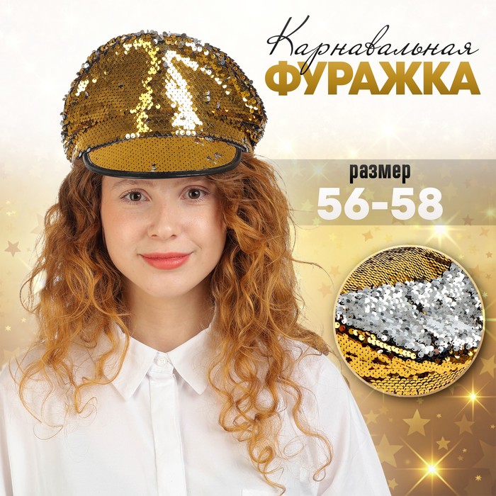 Карнавальная шляпа «Фуражка» с пайетками, р. 56–58