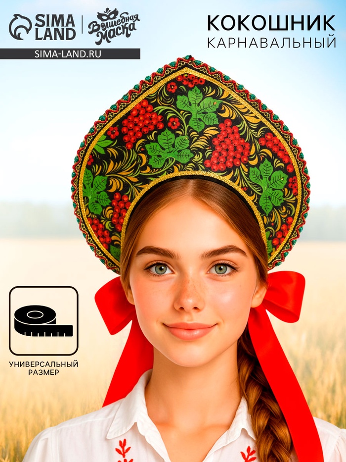 Кокошник карнавальный «Русские узоры», черный