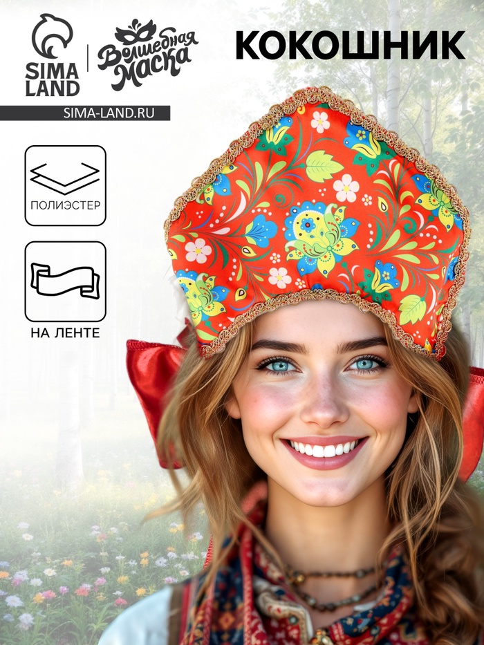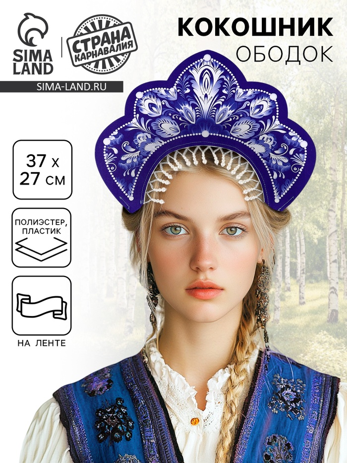 Ободок кокошник «Русская красавица» из фетра, с нанесением