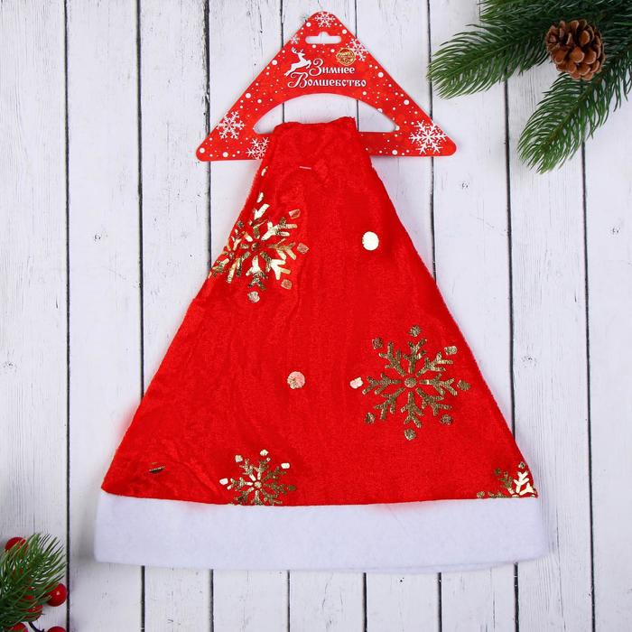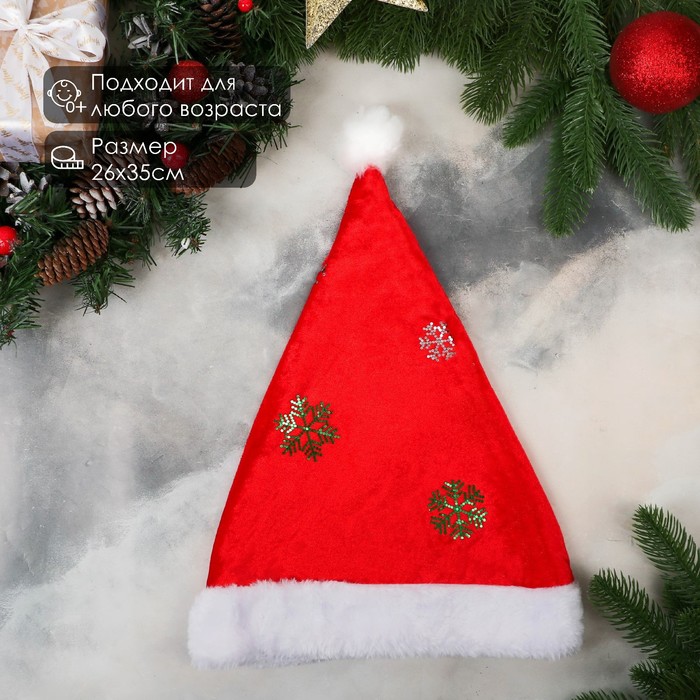 Колпак новогодний «Снежинки» 28×35 см, красный