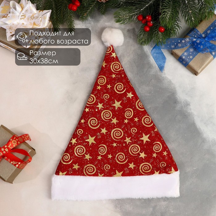 Колпак новогодний «Звёзды» 26×34 см, красный