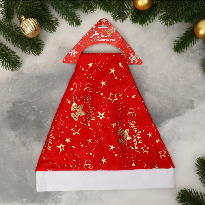 Колпак новогодний «Колокольчики, звёзды, бусы» 29×37 см, красный