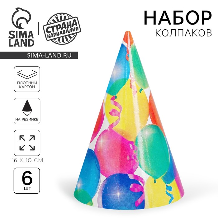 Колпак бумажный «С днём рождения» весёлые шары, 6 шт