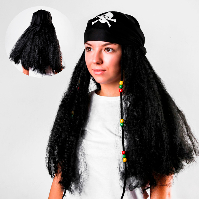 Карнавальный парик «Пират», бандана с длинными волосами, 110 г