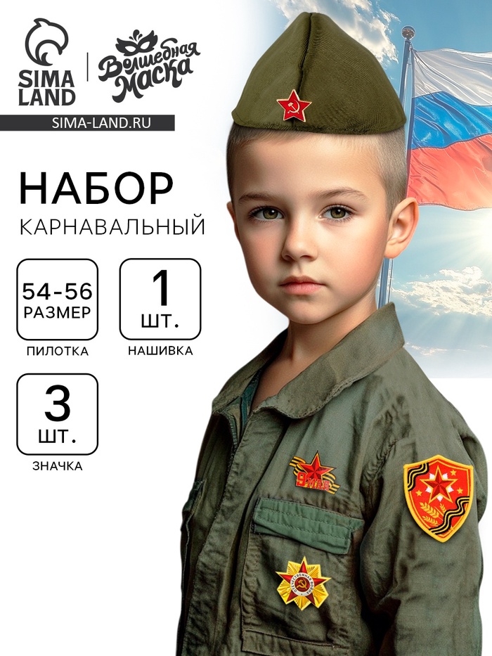 Пилотка на 9 мая «День победы», р. 52-54, 1 нашивка, 3 значка в комплекте