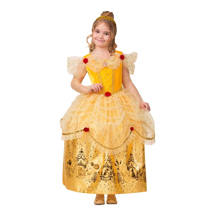 Карнавальный костюм «Принцесса Белль», текстиль-принт, платье, перчатки, брошь, р. 30, рост 116 см
