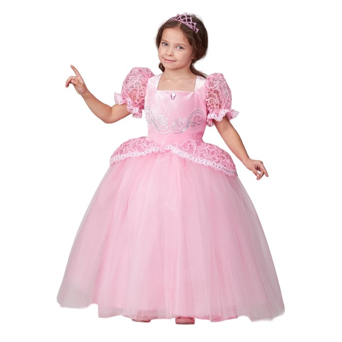 Карнавальный костюм «Принцесса Золушка», цвет розовый, платье, диадема, рост 134-68