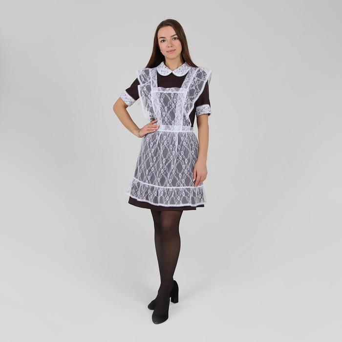 Школьный фартук с воланом по бретелям и низу, гипюр, цветы, р. 42-50, белый