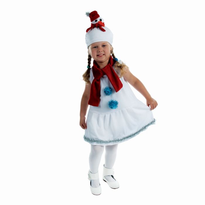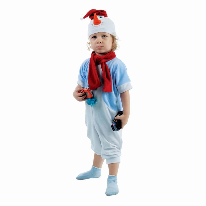 Костюм карнавальный детский «Снеговик с красным шарфом», велюр, рост 68-98 см, белый