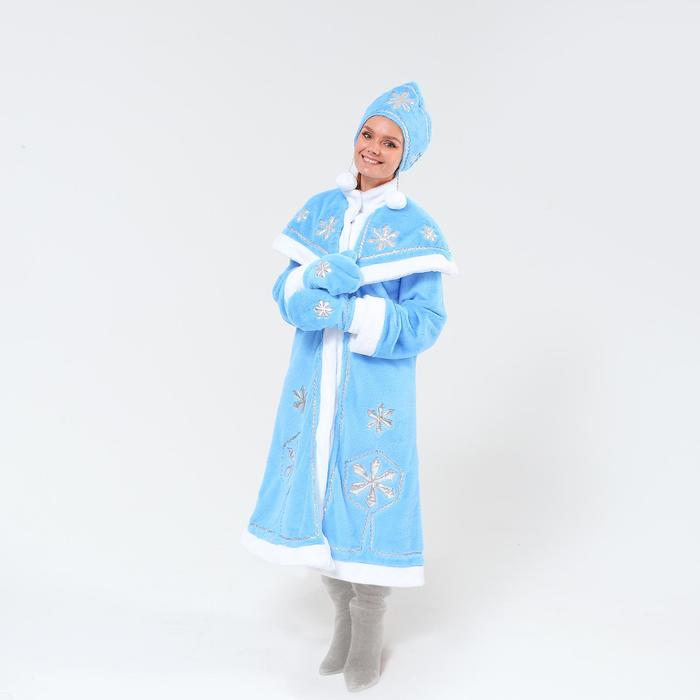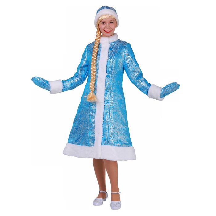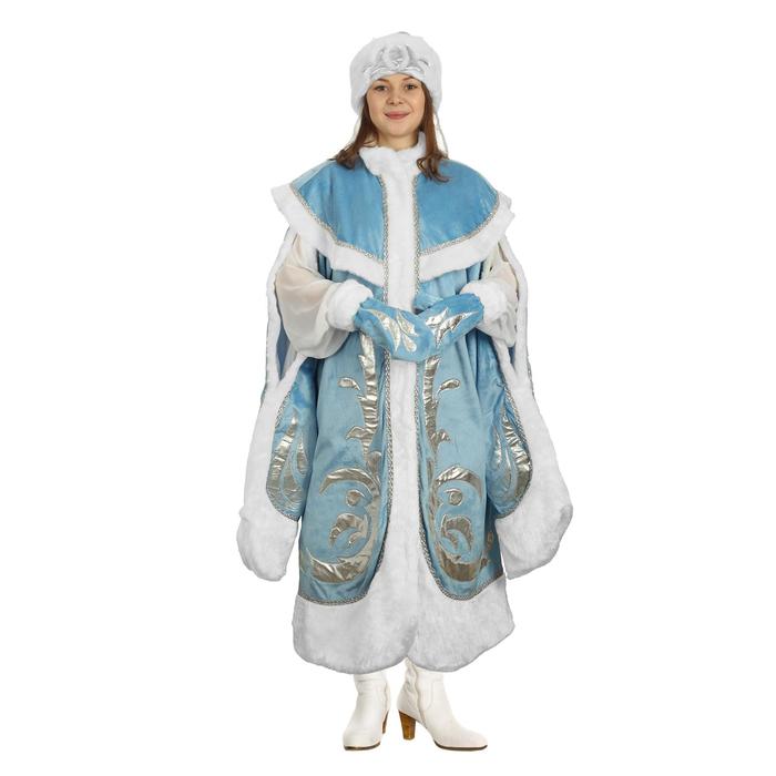 Костюм карнавальный «Снегурочка», шуба из парчи, шапочка, рукавички, цвет голубой, р. 46