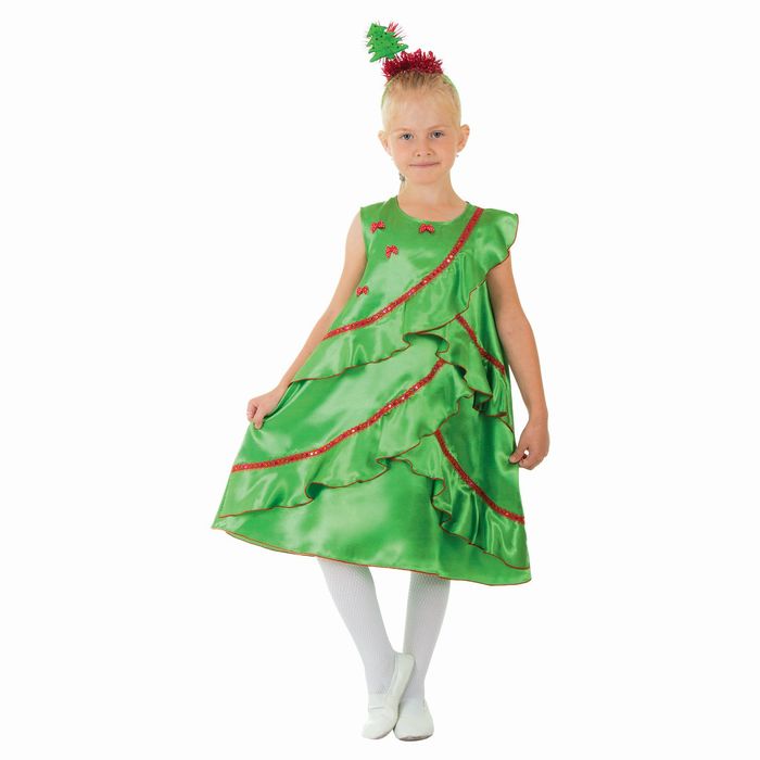 Костюм карнавальный «Ёлочка атласная», платье, ободок, р. 30, рост 116 см