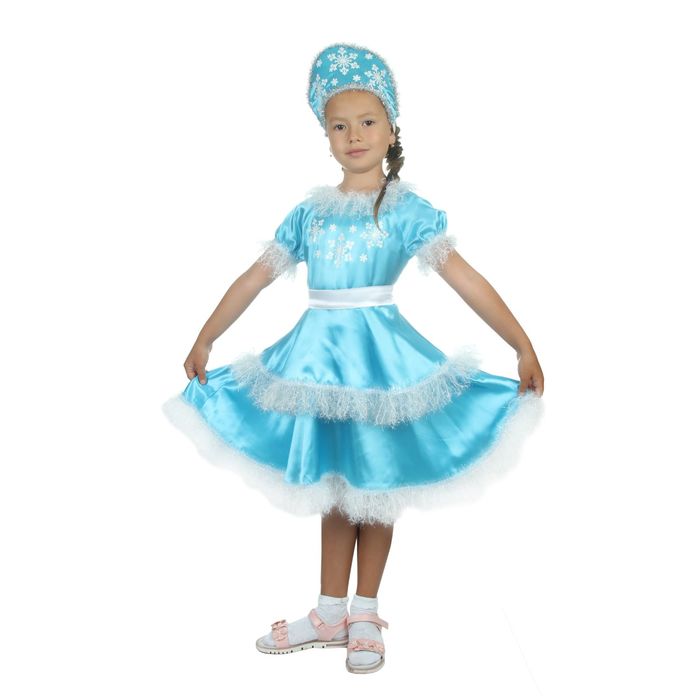 Костюм карнавальный детский «Снегурочка снежная», атлас, кокошник, платье, р-р 30, рост 110-116 см
