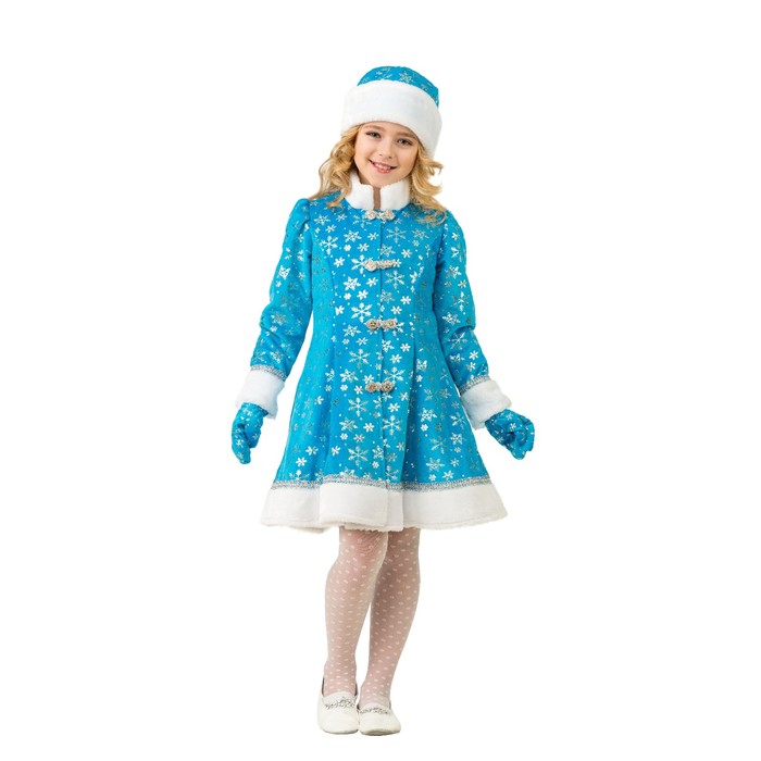 Костюм карнавальный детский «Снегурочка», плюш, пальто, шапка, рукавицы, р. 32, рост 128 см