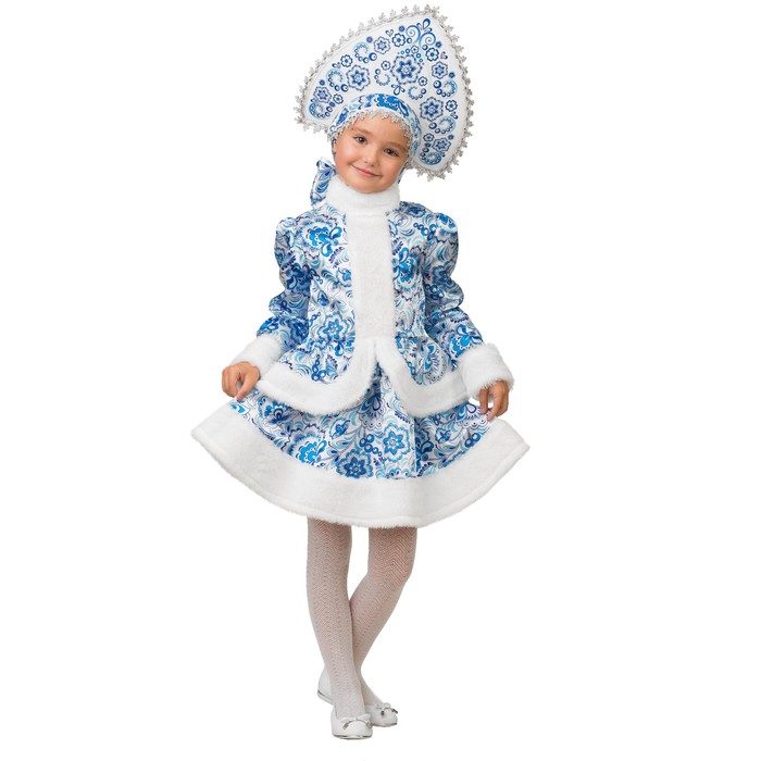 Карнавальный костюм детский «Снегурочка», бело-голубые узоры, размер 28, рост 110 см