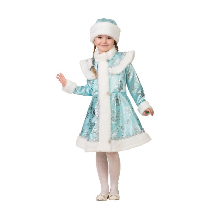 Карнавальный костюм «Снегурочка снежинка», сатин, пальто, шапка, р. 28, рост 110 см, бирюза