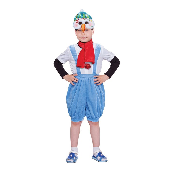 Карнавальный детский костюм «Снеговик», комбинезон, маска, шарф, рост 98-104 см
