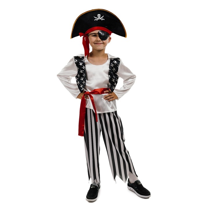 Карнавальный костюм «Пират», шляпа, повязка, рубашка, пояс, штаны, р. 28, рост 110 см