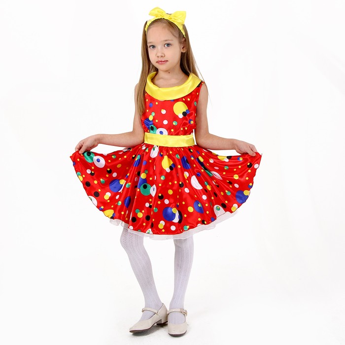 Карнавальный костюм «Стиляги 7», платье жёлтое в мелкий цветной горох, повязка, р. 30, рост 110-116 см