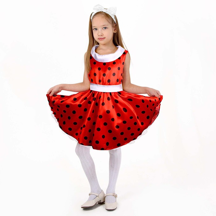 Карнавальный костюм «Стиляги 1», платье красное в чёрный горох, повязка, р. 30, рост 110-116 см