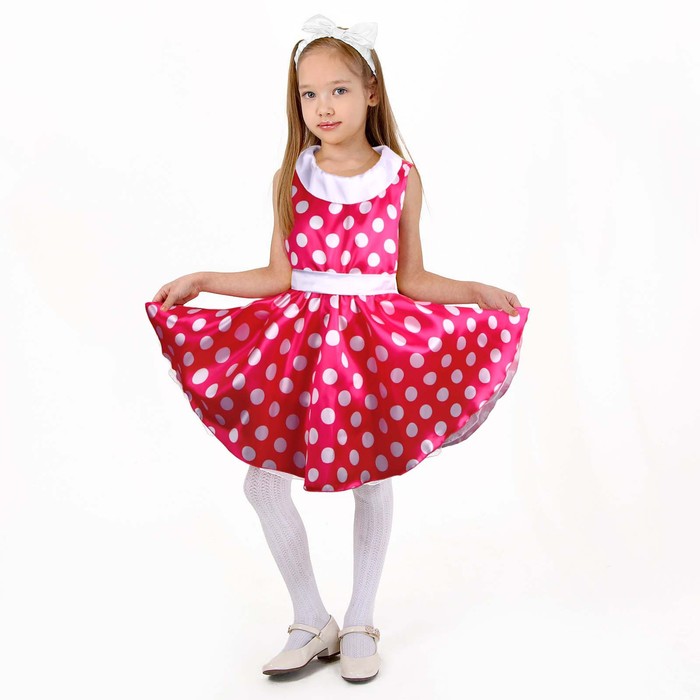 Карнавальный костюм «Стиляги 6», платье фуксия в белый горох, повязка, р. 30, рост 110-116 см