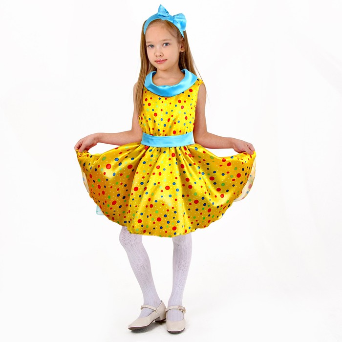 Карнавальный костюм «Стиляги 8»: платье жёлтое в крупный горох, повязка, р. 32, рост 122-128 см