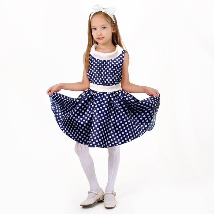 Карнавальный костюм «Стиляги 5», платье синее в белый горох, повязка, р. 30, рост 110-116 см
