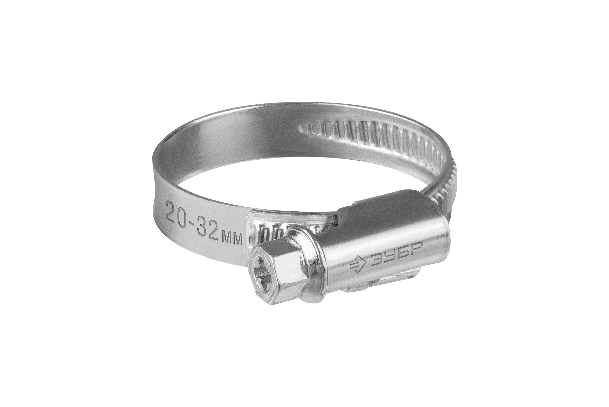 ЗУБР Х-9Н, 20 - 32 мм, накатная лента 9 мм, цинк, 50 шт, червячный хомут (37807-32)