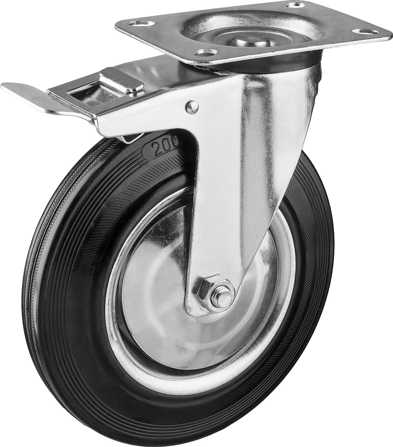 ЗУБР d 200 мм, г/п 185 кг, игольчатый подшипник, резина/металл, поворотное колесо c тормозом, Профессионал (30936-200-B)
