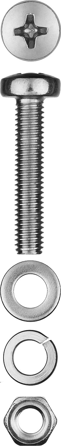ЗУБР DIN 7985, M5 х 16 мм, цинк, 18 шт, винт с гайкой и шайбами (303476-05-016)