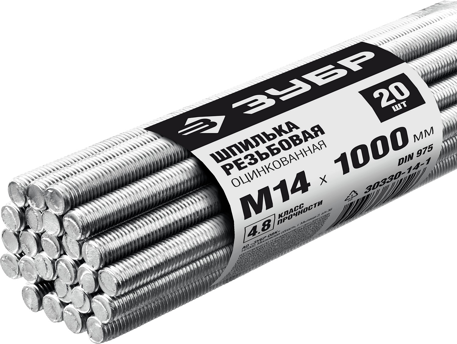 ЗУБР DIN 975, кл. пр. 4.8, М14 х 1000 мм, цинк, 20 шт, резьбовая шпилька (30330-14-1)