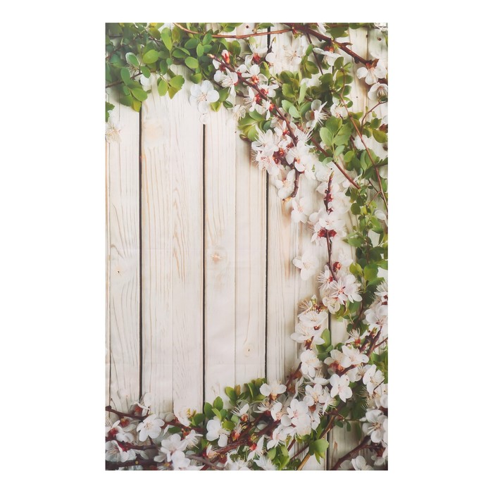 Фотофон для съёмок, винил «Яблоневые ветки на светлой дощатой стене», 80×125 см