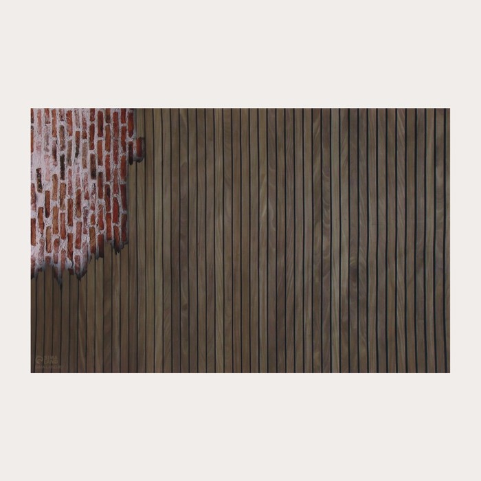 Фотофон для съёмок, винил «Деревянные рейки и кирпич», 120×80 см