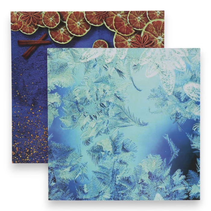 Фотофон двусторонний картон плотность 350 гр "Морозный узор и апельсины" 50х50 см